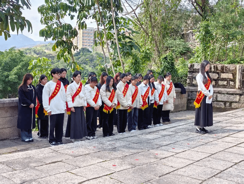 烈士陵园内松柏苍翠,全体人员在纪念碑前肃立,庄严地向烈士们鞠躬、默哀,向为国家和民族献出生命的英烈致以最深切的缅怀。默哀结束后,学生代表薛奕以“赓续先烈志,砥砺青年行”为题,带领师生共同重温革命先烈的英勇事迹,寄托追思之情。先烈们用热血铸就了今日的和平与繁荣,在场的同学们深刻领悟作为新时代青年,应当以“明德、诚信、允能、笃行”的校训为指引,勇担使命,不负时代重托,为实现中华民族伟大复兴贡献自己的力量。