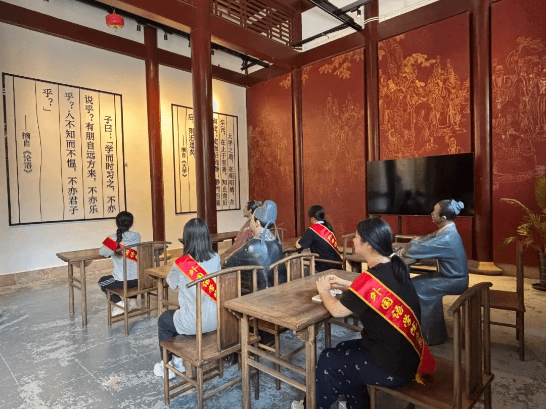 为了让参观者更直观地感受当年的讲学氛围,武夷精舍内还精心布置了书院场景。实践队围坐书桌前,听着当地向导讲述朱子生平与理学脉络,仿佛穿越时空回到了那个学术繁荣的年代,看见朱熹同弟子们围坐论道的画面:他们或执经叩问,或激辩往复。而理学的种子,便在这一次次的研讨与传习中,悄然播向更辽远的时空……