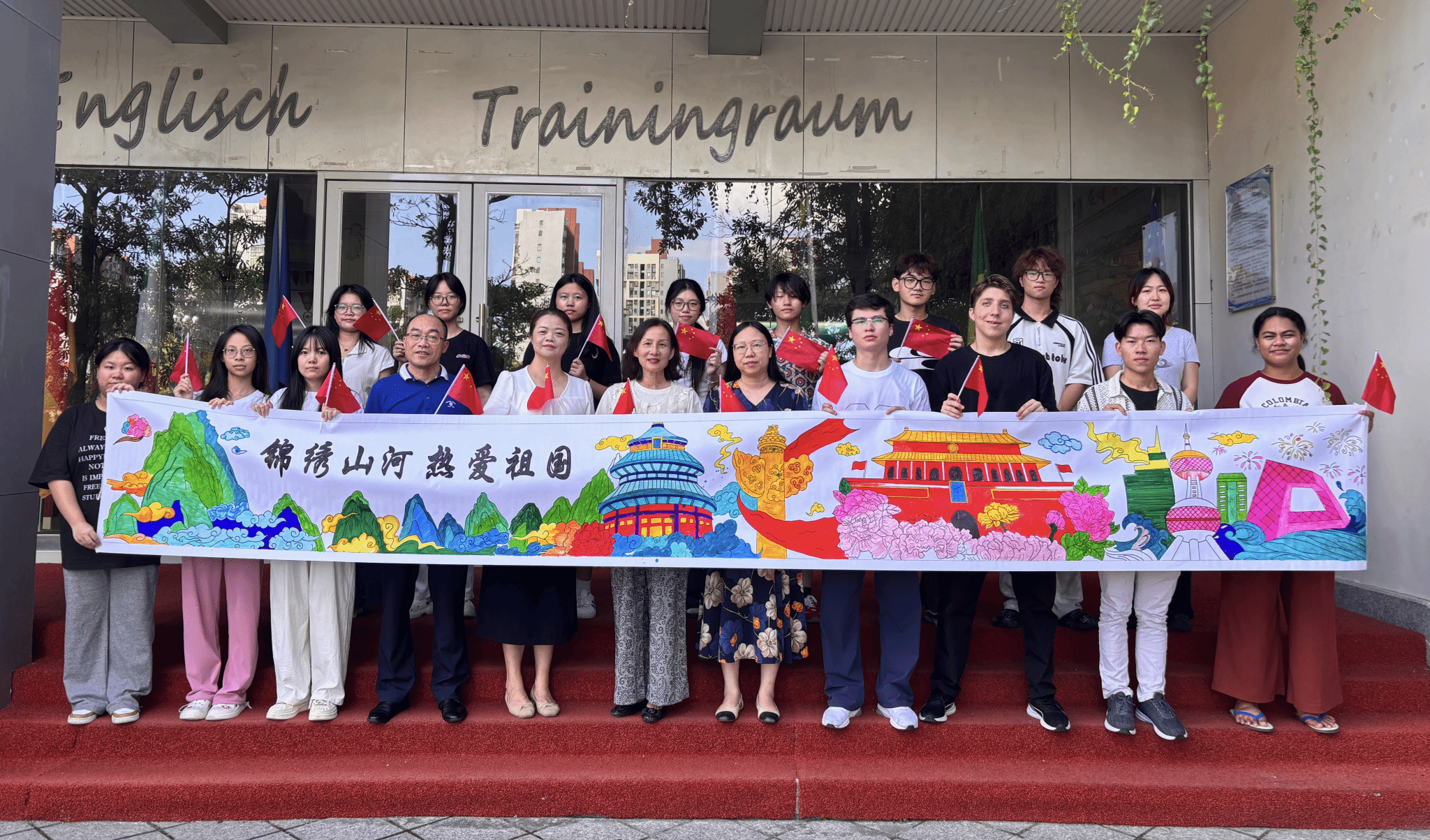 为庆祝中华人民共和国成立76周年,厚植外院学子的爱国情怀与家国担当,在中外交流讲好中国故事、传播中国声音,9月28日,77779193永利于外语体验活动中心举办“执青春之笔,共绘千秋华章”主题画卷共创活动,学院党政班子成员、学生代表及留学生共同参与,执笔共绘多彩画卷。