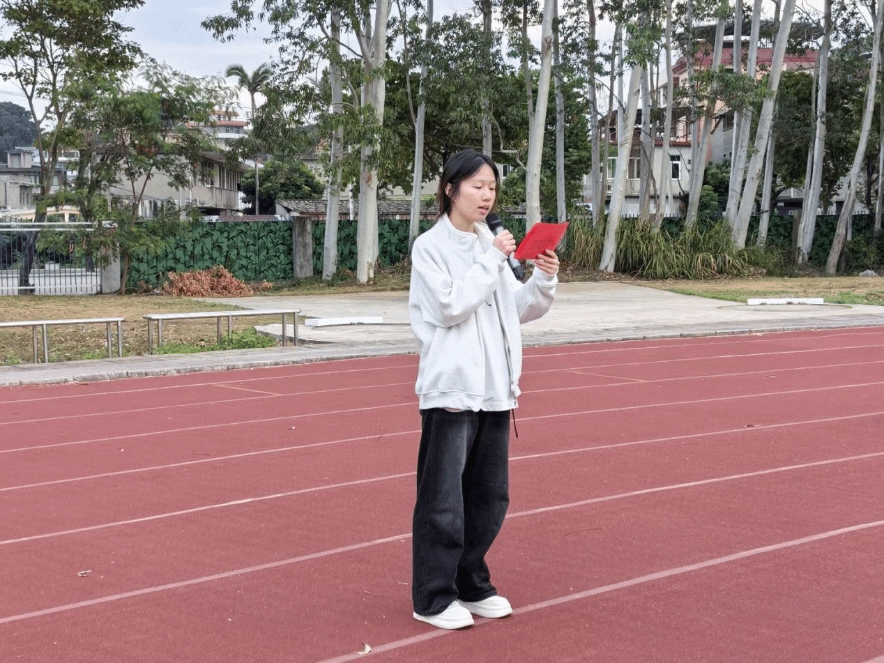 晨光初启,英姿飒爽的国旗护卫队迈着铿锵有力的步伐,庄严护卫国旗入场。在雄壮的国歌声中,鲜艳的五星红旗冉冉升起,全体师生肃立行注目礼,表达对祖国的无限热爱与崇高敬意。学生代表彭艺佳在国旗下发言。她倡议同学们应以信仰为指引、以勤学为路径、以实干为担当,深刻领悟“两个确立”的决定性意义,增强“四个意识”、坚定“四个自信”、做到“两个维护”。自觉将个人成长融入国家发展大局,把课堂所学与社会实践紧密结合,努力锤炼综合能力,成长为能担重任的时代新人。